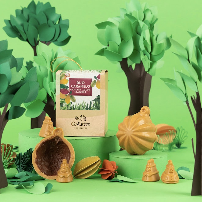 Que tal uma bola de Natal feita com duas camadas de puro chocolate? Por fora, nossa novidade: chocolate branco caramelizado. Por dentro, chocolate ao leite 40% cacau com crocante de caramelo. Uma delícia tão especial que vai dar vontade de pendurá-la na árvore e abrir só depois da ceia, como um doce segredo natalino.