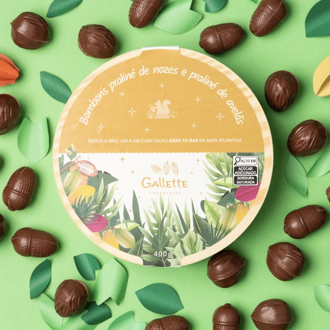 Nossa seleção une dois clássicos: Praliné de Nozes e Praliné de Avelã, feitos à mão e envolvidos em casquinhas de chocolate 40% cacau.