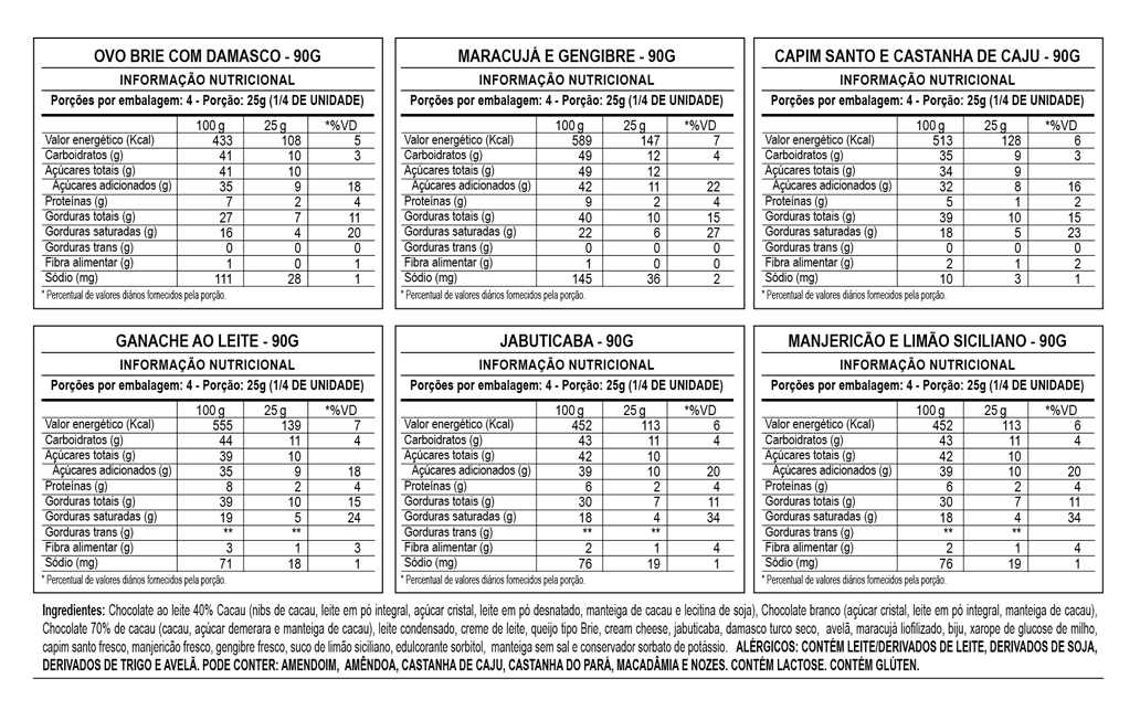 Uma seleção especial com 6 ovos recheados em combinações irresistíveis: manjericão com limão siciliano, capim santo, maracujá com gengibre, jabuticaba, ao leite cremoso e brie com damasco no chocolate branco.